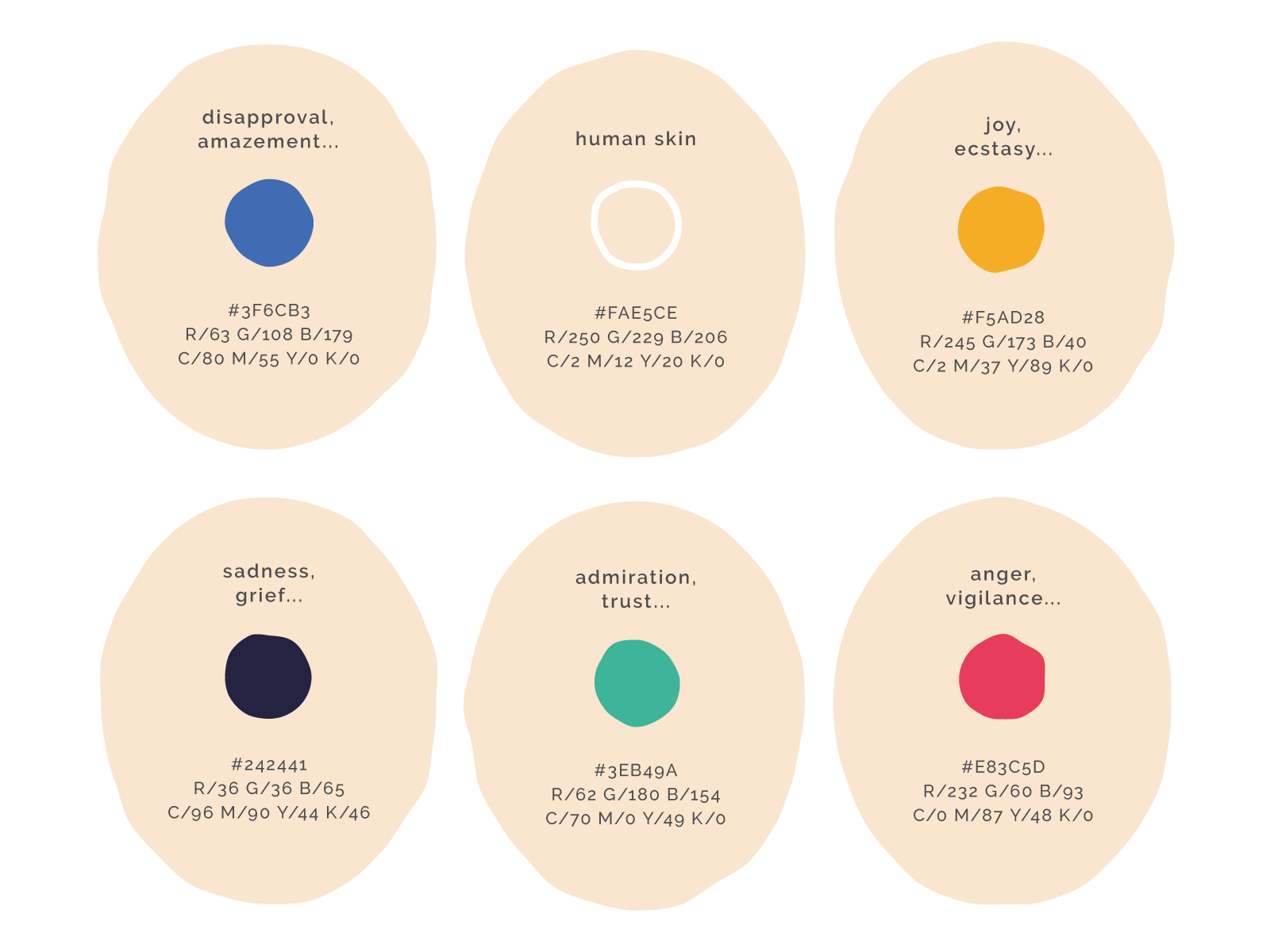 The colour palette consists with colourful hues which resembling a rainbow, reflecting the psychology of color and art therapy used in counselling. Each colour represents various human emotions and is complemented with a human skin colour.