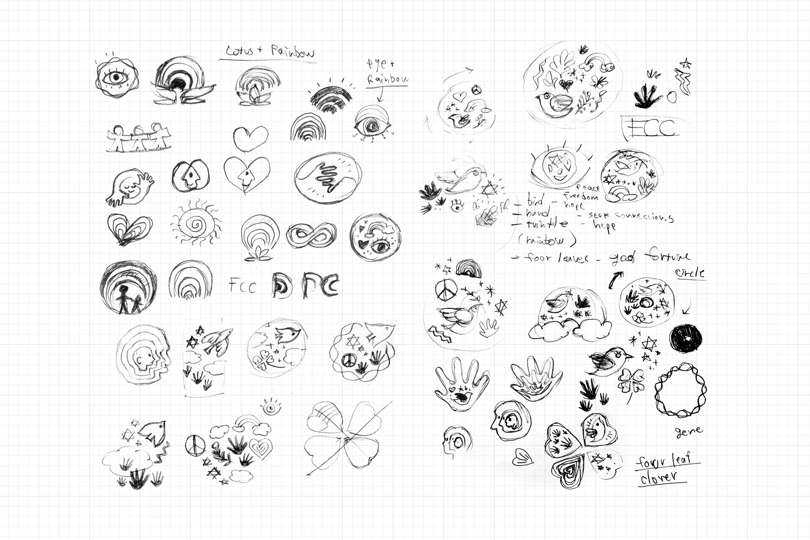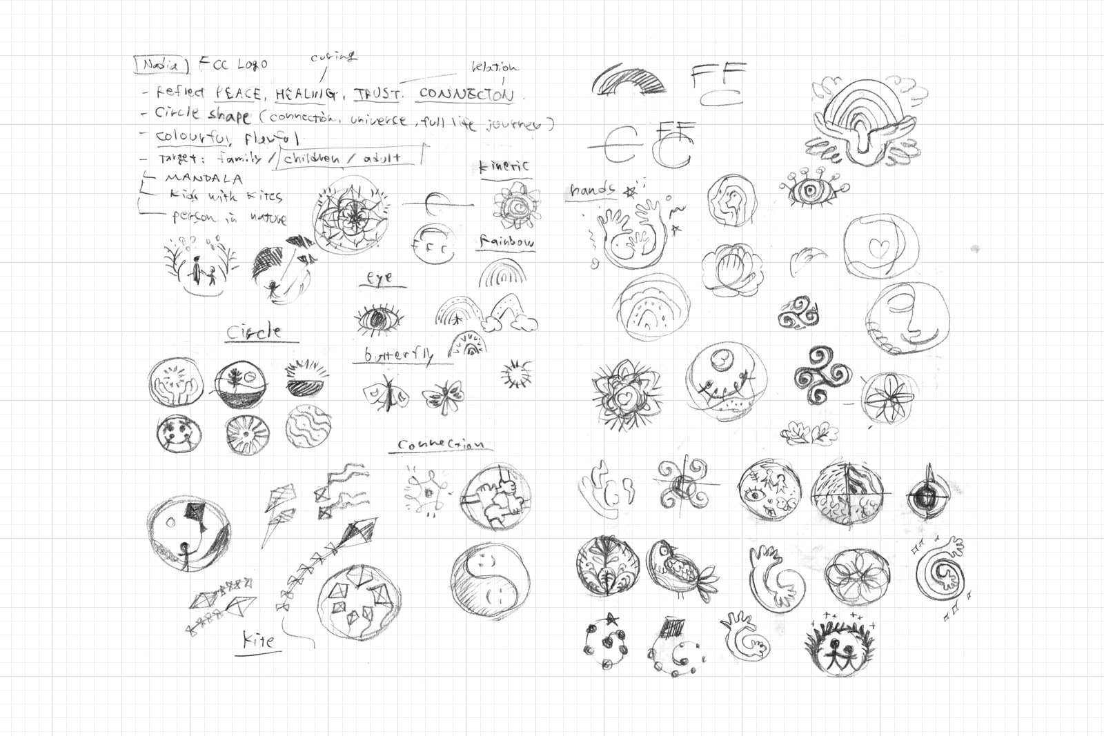 From the various ideas popped up during this process, including designs resembling mandalas representing the circle of life, designs evoking the embrace of nature, and collages of related elements, we narrowed down the appropriate designs and directions.