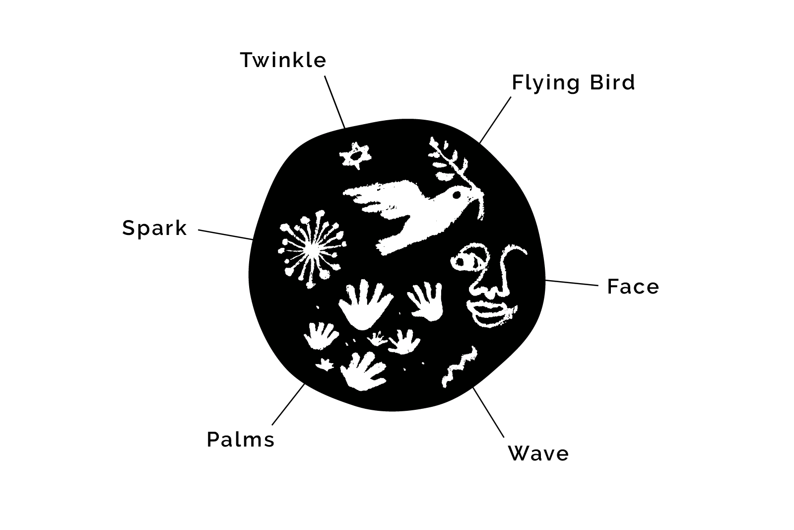 The elements incorporated into the logo, and their representation include: a flying bird representing peace and freedom, palms representing the human desire for connection and trust, a twinkle and spark representing the light of hope in darkness, a wave representing the ever-changing human mind, and a half face representing the persona of visitors. These elusive human conditions which appear randomly and fleetingly in the human mind, are scoop up within a circular shape with swaying edge representing the fluctuating mind, as if to making them more definitive—as the symbol of counselling.